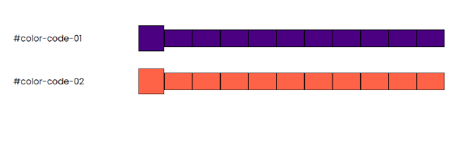Didalam setiap swatch, akan ada satu kotak besar untuk color-main yang adalah warna output dari Color Thief, dan 10 warna yang akan diisi dengan shade-shade dari color-main.